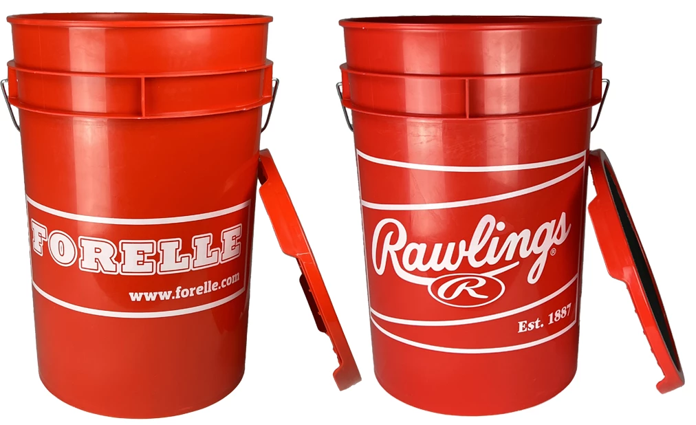 - Rawlings durable bucket holds 4 dozen baseballs or 3 dozen softballs.