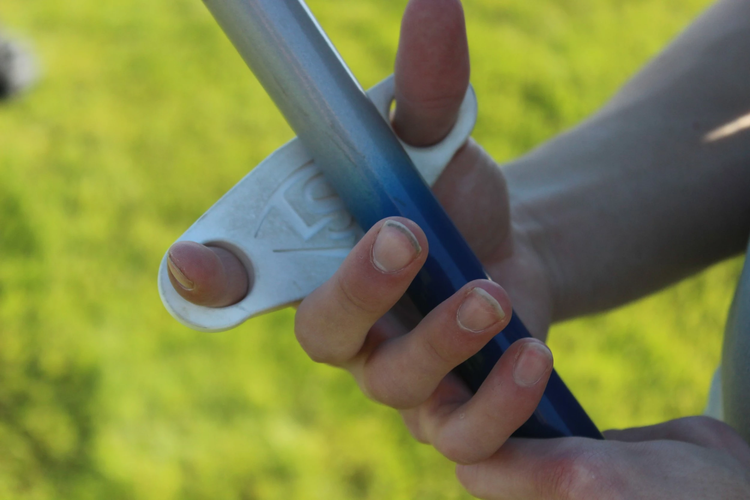 Gripping the bat too tightly and tensing the hands and forearms leads to a decrease in hand speed, bat speed and power. Coaches have been telling players for years to loosen their grip, get the bat out into the fingers, roll the hands after impact and get faster bat speed. The problem, however, is that with a grip that is too tight and too deep in the palm during the grip these things the coach is asking for are impossible. The Blaze Power Grip solves these challenges.