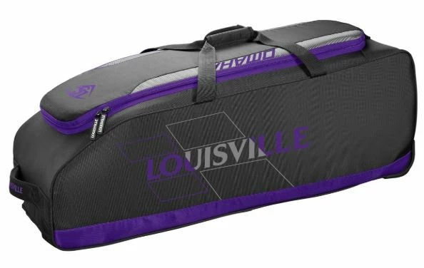 Available in a variety of colors and with a removable customization panel, the Louisville Slugger Omaha Wheeled Rig is a must-have for serious ballplayers. A zippered bat compartment comfortably fits four bats and the main compartment houses a helmet, gear and your glove. An interior L Bracket helps your bag last longer with inline wheels and integrated fence hooks for easy transport and storage.