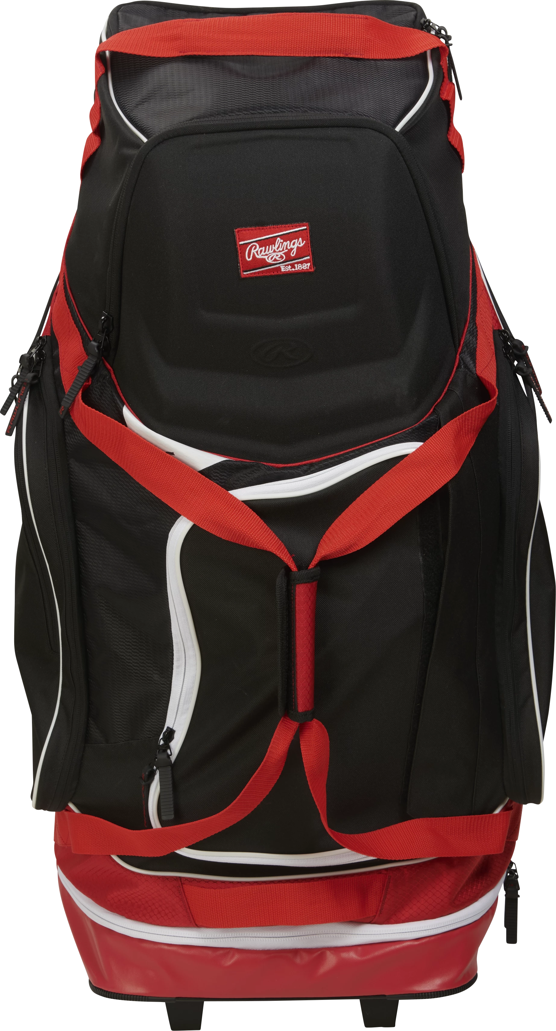 This wheeled catcher’s bag is extremely versatile, and perfect for carrying all your gear to the game. It features a main storage compartment for your catcher’s gear and helmet, as well as a separate, hard molded pocket to keep your glove protected, and can hold up to four (4) bats. Its full bottom rails with rugged, durable wheels along with reinforced hand and shoulder straps make this bag ready to stand the test of time.