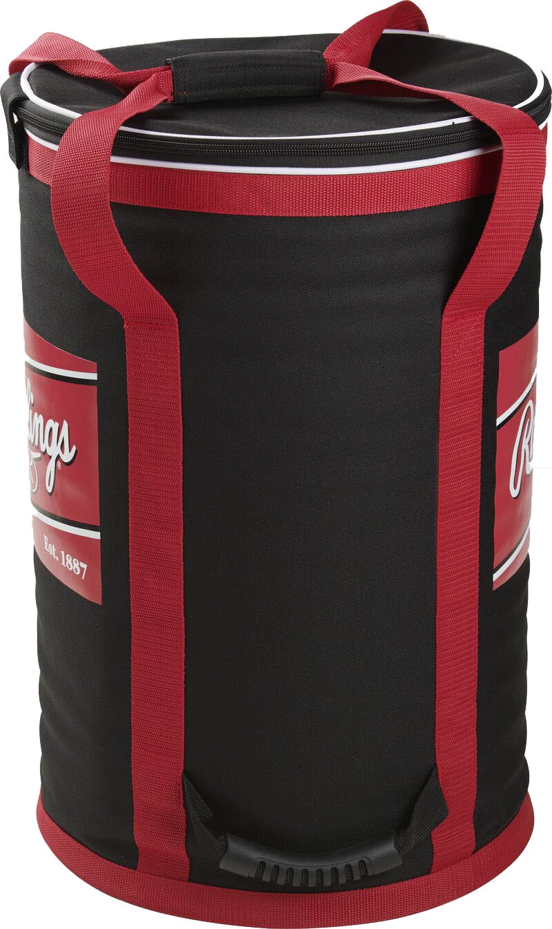 In addition, it features a durable handle on the bottom making it easier to dump balls out. It’s also equipped with a removable top panel to add team customization for the perfect touch to the black/red design and Rawlings patch logos. As a result, you’ll have it easy carrying all your baseballs or softballs around, and getting them ready to use too.