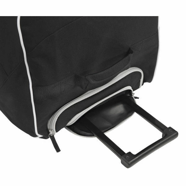 Not only will this wheeled catcher’s bag hold all of your catcher’s equipment in it’s extra large main compartment but it also features exterior pockets as well as a lower pocket to hold 4 bats. The large wheels and telescoping handle make transporting equipment a breeze.
